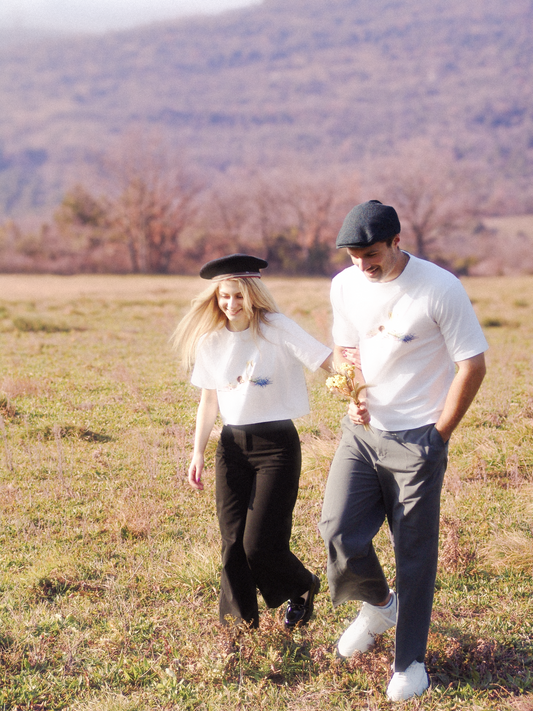 Soyez certain de faire le meilleur effet avec nos boucles d’oreilles “l’aurore” et notre t-shirt “le rendez-vous” qui vous projette dans une rencontre champêtre à l’ardéchoise ; au menu, clairette, nougat et châtaigne. Enfin, si votre âme sœur n’est pas encore là pour que vos tenues s’accordent, rappelons-nous que l’avenir sera radieux…