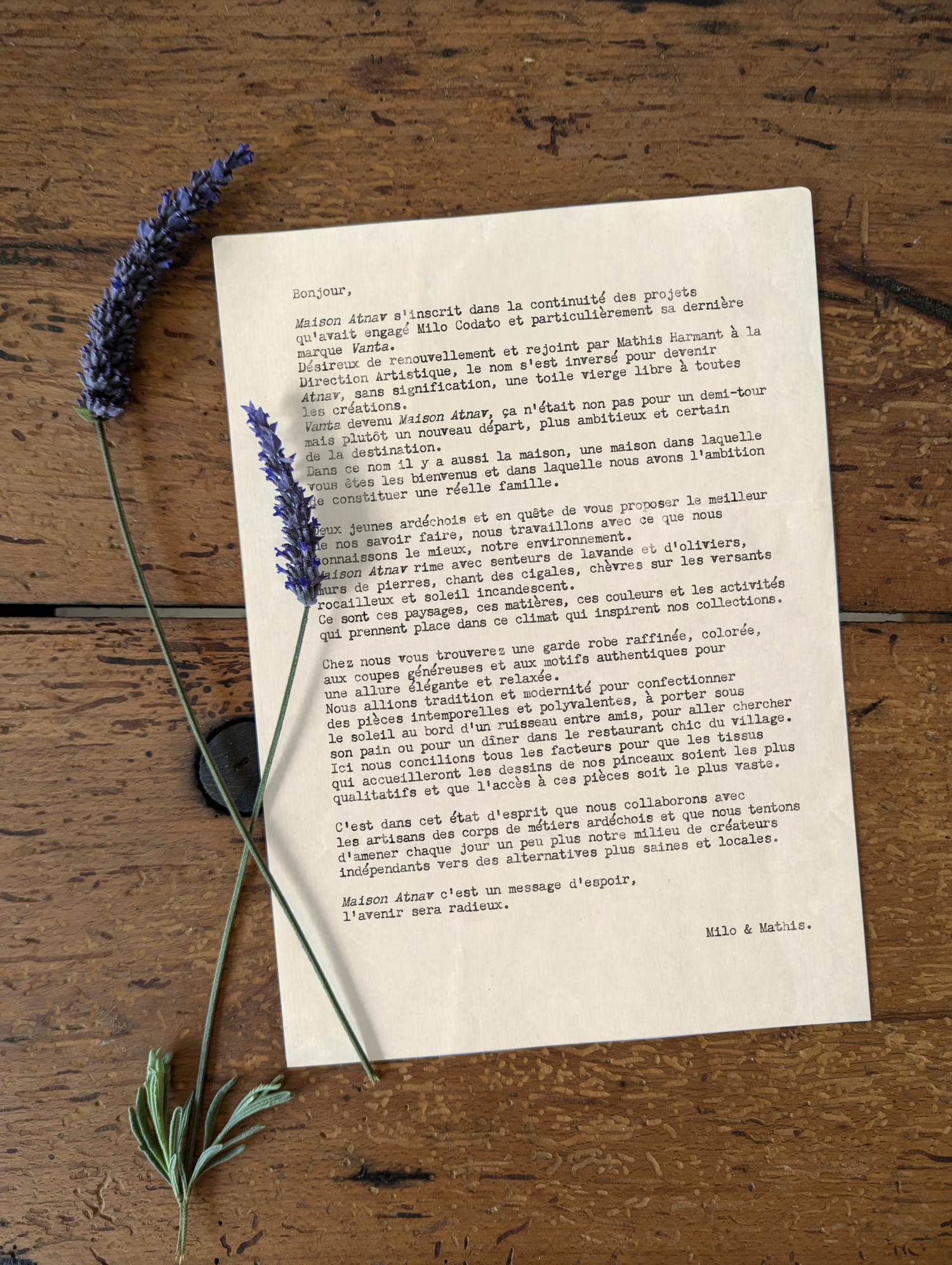 C’est dans cet état d’esprit que nous collaborons avec les artisans des corps de métiers ardéchois et que nous tentons d’amener chaque jour un peu plus notre milieu de créateurs indépendants vers des alternatives plus saines et locales.