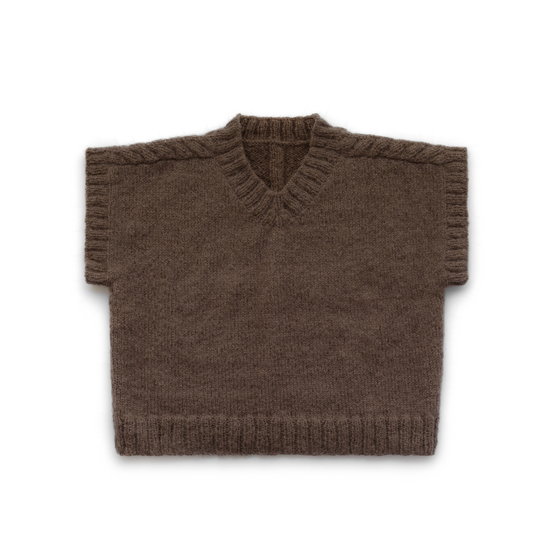 Gilet sans manche tricoté à partir d'un mohair français de qualité, doux, chaud et respirant. Incontournable de la garde-robe pour toutes les saisons comme pièce principale et layering.