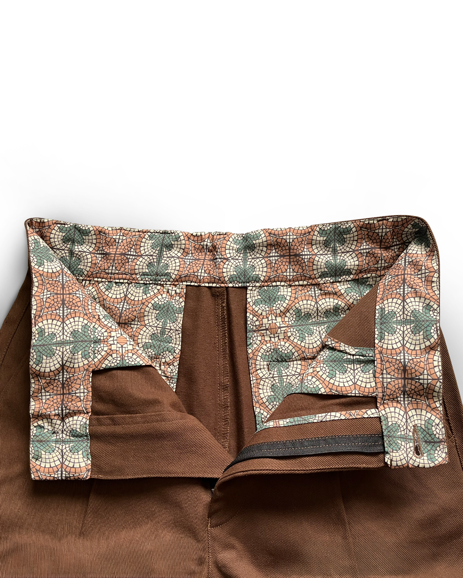 Notre modèle cardo est un classique de la garde robe. Sobre et élégant avec sa coupe droite et ses deux plis italiens, une doublure aux motifs de mosaïque