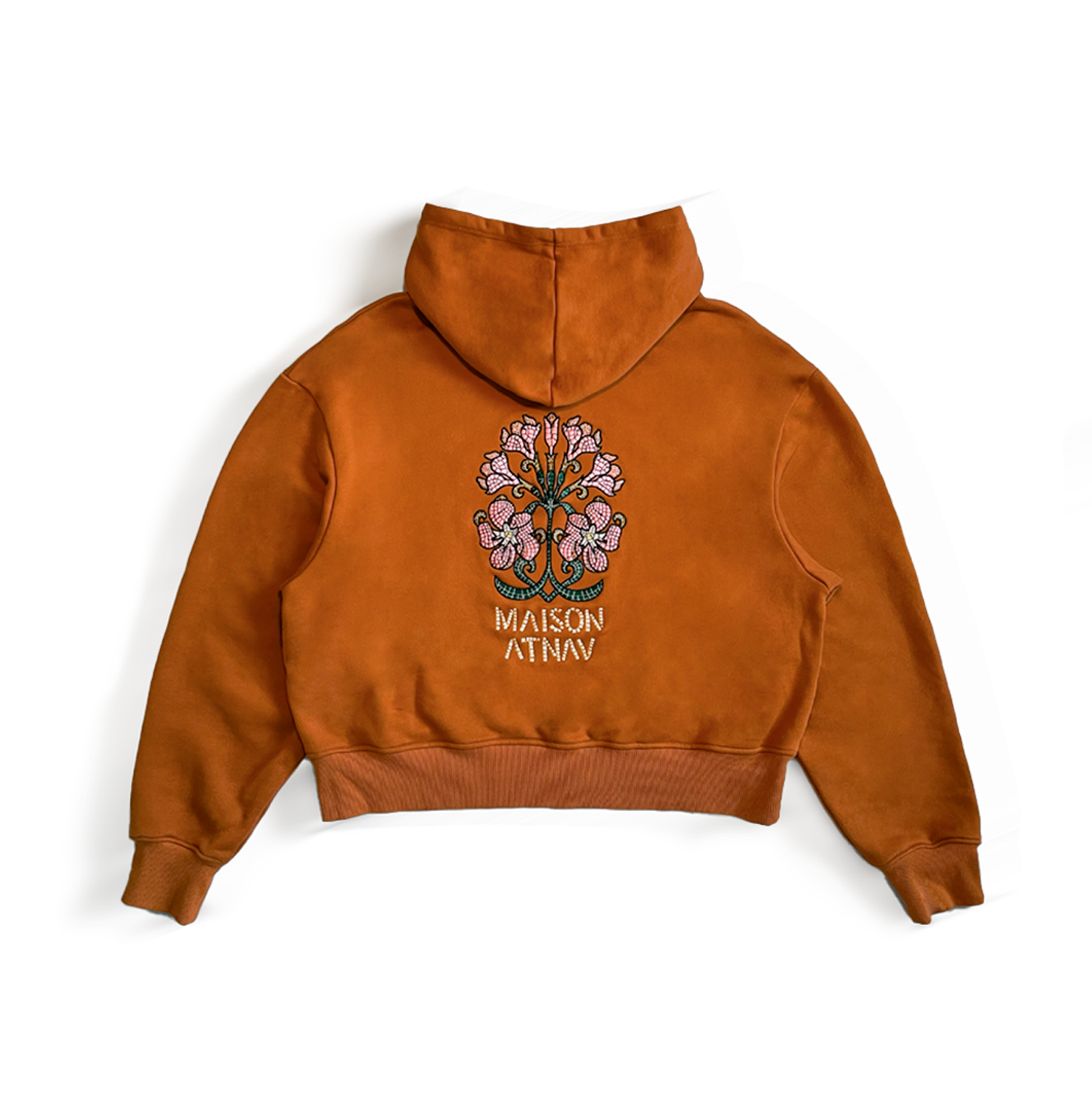 Ce sweat possède notre fameuse coupe boxy. Inspiré de l'artisanat de la mosaïque avec une coupe terracotta, on retrouve une large broderie dans le dos.